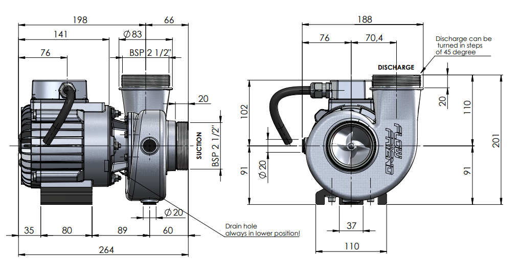 A FlowFriend está disponível em três modelos, todos com o mesmo motor, mas com um alojamento de bomba e um rotor diferentes instalados.