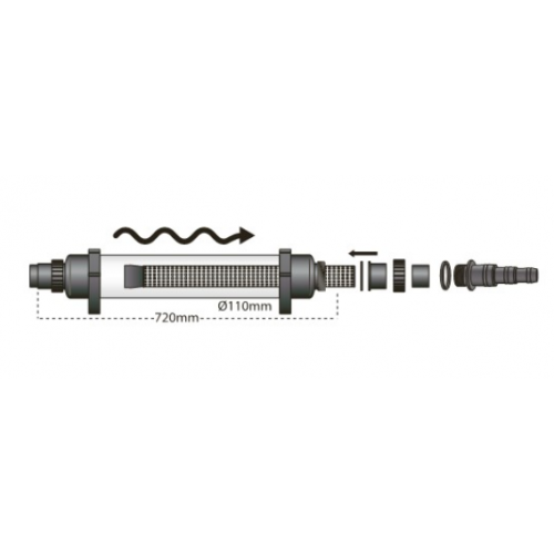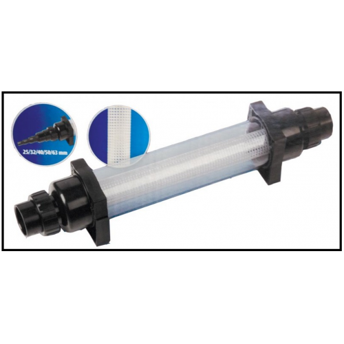 O tubo que envolve o pré-filtro é transparente e, portanto, permite que se veja quando precisa de ser limpo.