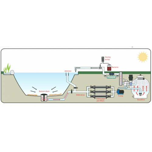 Um pré-filtro assegura que os resíduos maiores, como folhas, pequenos ramos e algas grandes, sejam coletadas antes de chegarem à bomba ou ao filtro.