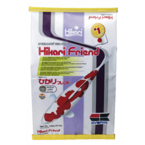 Hikari Friend é um alimento diário para peixes, embalado de forma económica numa embalagem de 10 kg. Este alimento é perfeito para grandes lagos com muitas Kois ou outros peixes de lago.