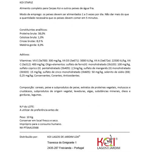 Ração ideal para Kois e outros peixes de água fria.