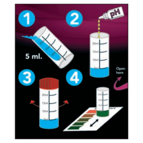 Teste muito fácil de realizar com frascos conta-gotas e instruções esquemáticas simples.