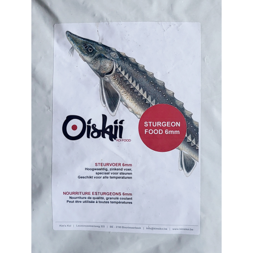 Ração de esturjão de qualidade, afundante, em saco de 9kg e com grão 6mm para esturjões com mais de 50cm.