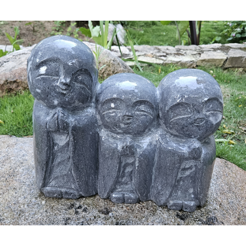 Pequenos Monges em calcário azul com 30cm de altura.