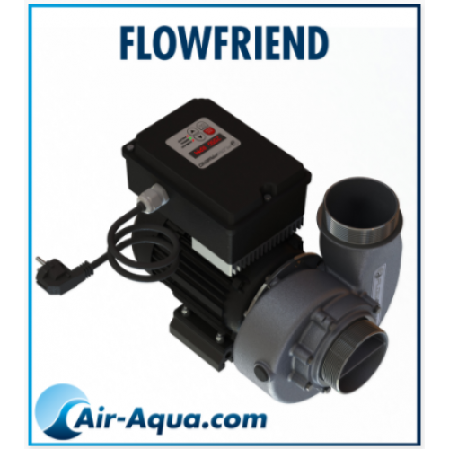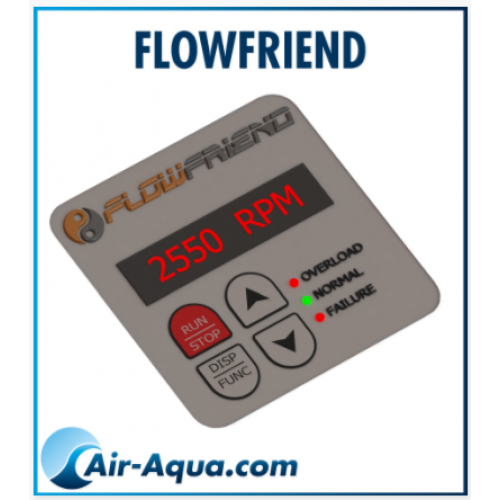 A velocidade do motor (600-2.550 rpm) pode ser ajustada de acordo com cada tipo de FlowFriend. A bomba inclui um visor para este propósito que também mostra o consumo de energia e as horas de operação. Cada FlowFriend também pode ser controlada externamente através de uma porta 0-10V opcional. O principal benefício dos motores de ímanes permanentes em comparação com os motores assíncronos controlados por frequência é a extraordinariamente elevada eficiência a baixas rotações. No entanto, mesmo em altas rotações, essas bombas são significativamente mais eficientes.