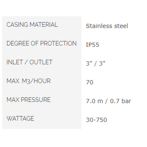 7. 3 caixas de bomba otimizadas diferentes, fundidas completamente em aço inoxidável 316
