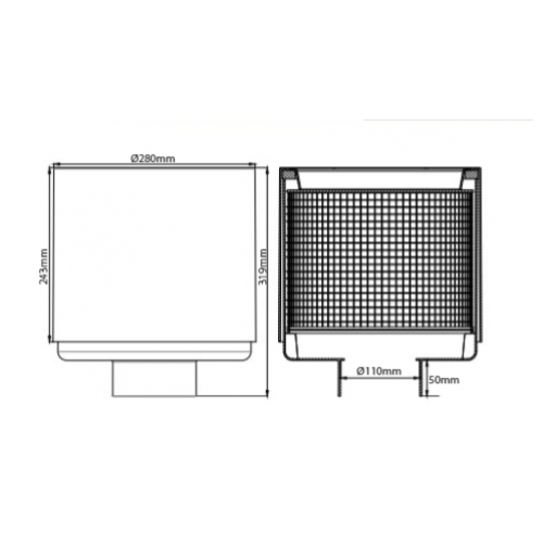 Skimmer flutuante XL com diâmetro de 280mm e com ligação para tubagens de 110mm.